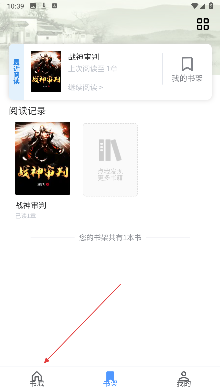 1、在书架页点击底部【书城】,进入书籍推荐页面。