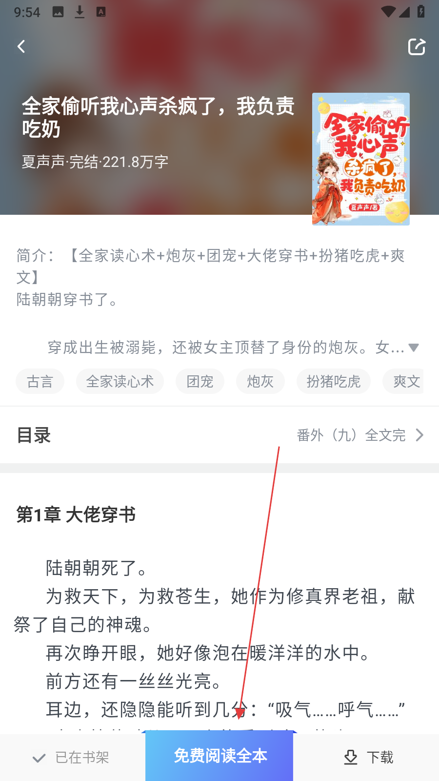 3、点击【免费阅读全本】,进入书籍阅读页面开始阅读。