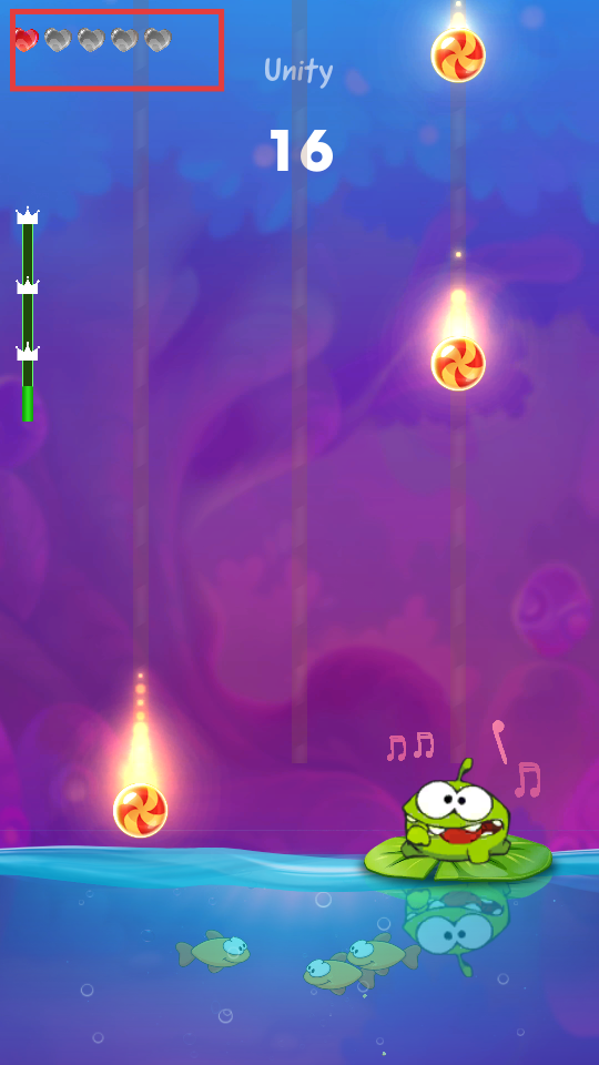 3、收集糖果时要注意,上方爱心代表生命值,需避免失误损失过多生命值。