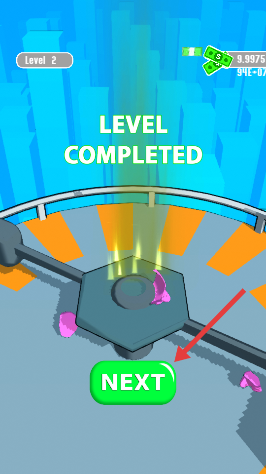 4、成功完成关卡后,界面显示【LEVELCOMPLETED】,点击【NEXT】按钮,进入下一关继续游戏。