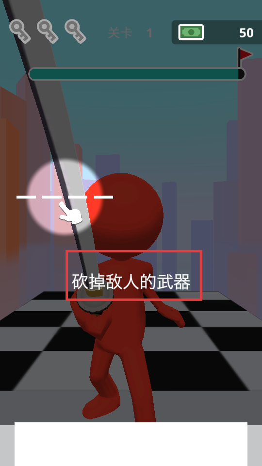 3、战斗时,按照提示【砍掉敌人的武器】,瞄准敌人武器滑动,破坏其攻击手段。