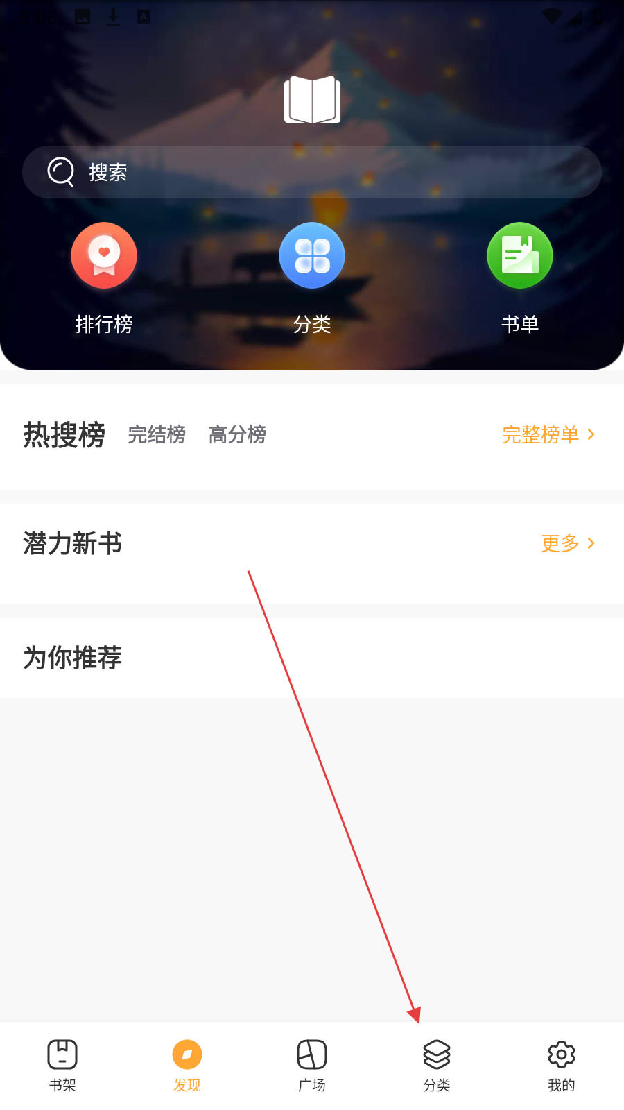1、在发现页,点击底部【分类】进入分类浏览界面。