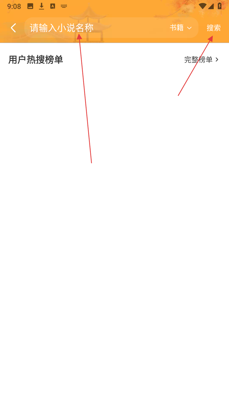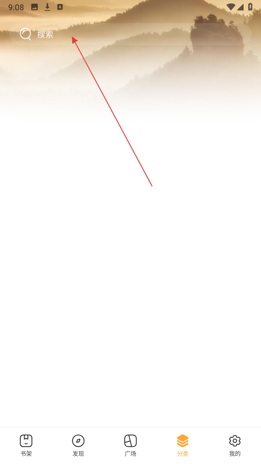 2、在分类页,点击顶部【搜索】进入小说搜索界面。