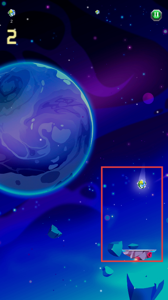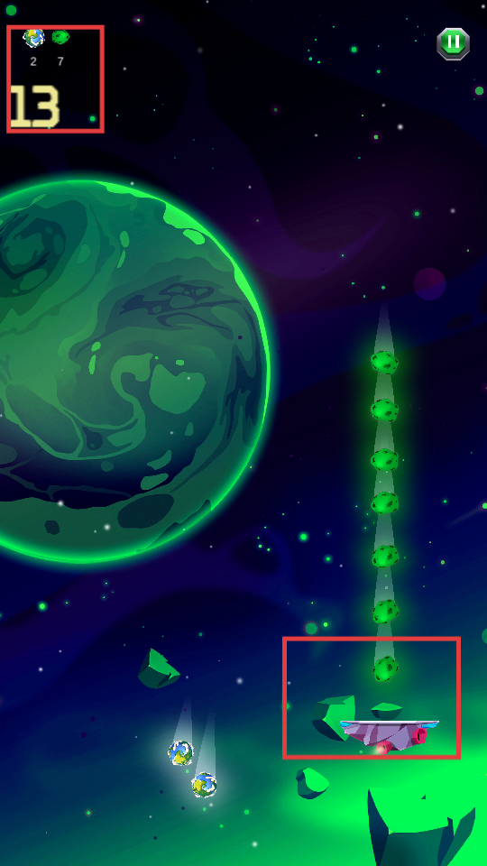 2、操控飞船移动,收集画面中的星球状物体,规避太空碎石,推进游戏进程。