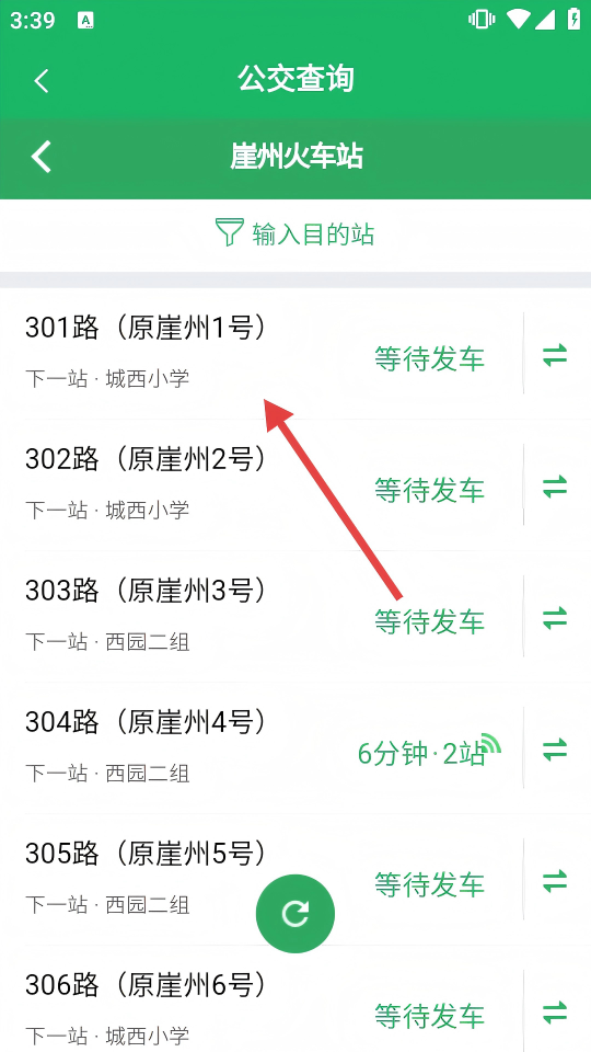 3、在公交列表里,选中目标线路,查看其实时发车状态。