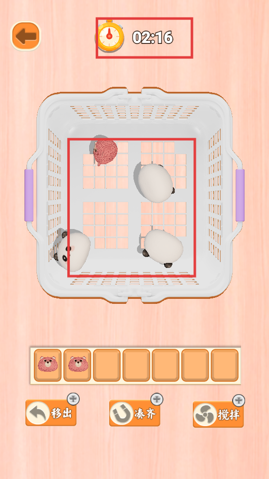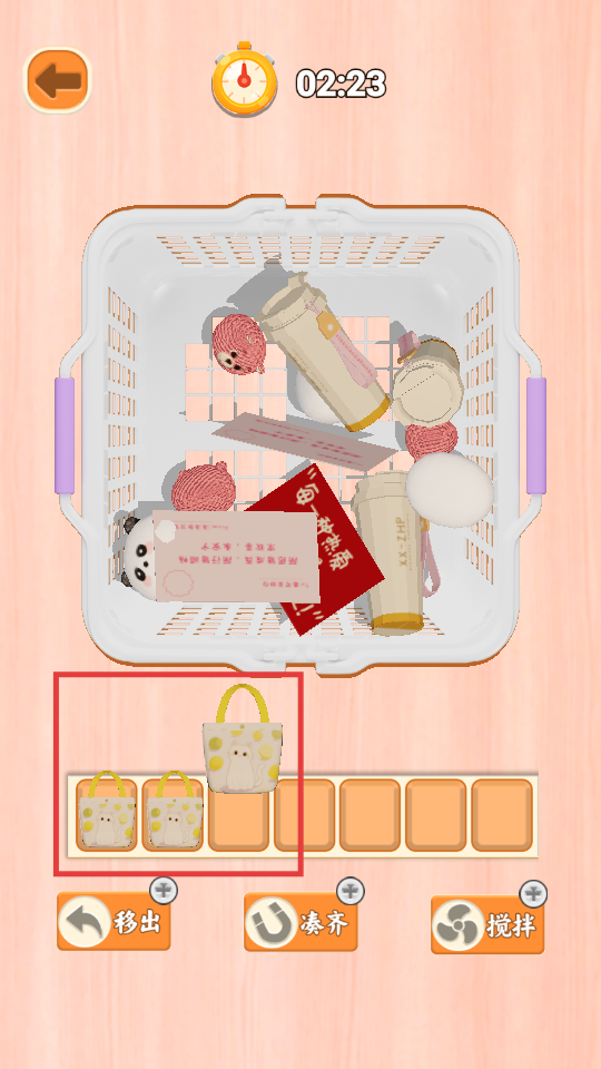 3、留意倒计时,利用【凑齐】等功能,提升消除效率,将篮中所有物品清空。