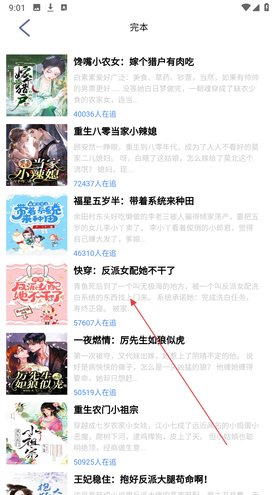 2、在列表选【感兴趣完本】小说,进入书籍详情页。