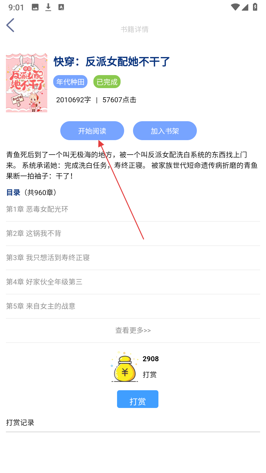 3、在详情页点击【开始阅读】进入小说阅读界面。