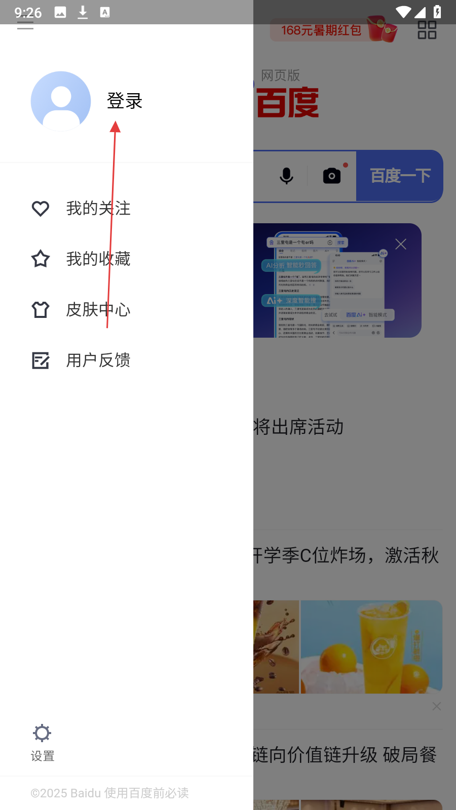 1、在百度首页点击左上角【头像】进入侧边栏。