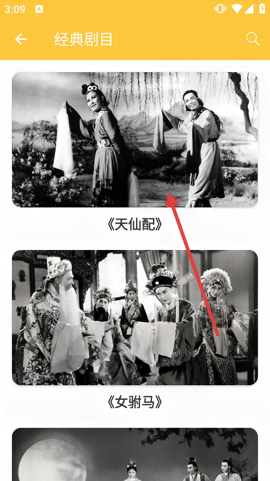 2、在经典剧目界面,点击【《天仙配》】封面,进入该剧详情页查看信息。
