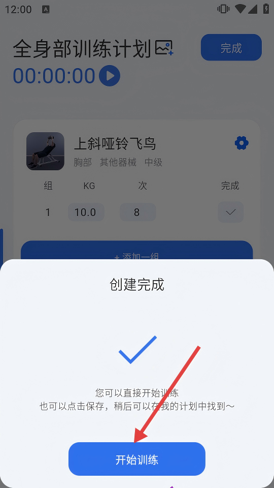4、计划创建完成后,可直接点击【开始训练】,也能保存后从“我的计划”里找到训练计划。