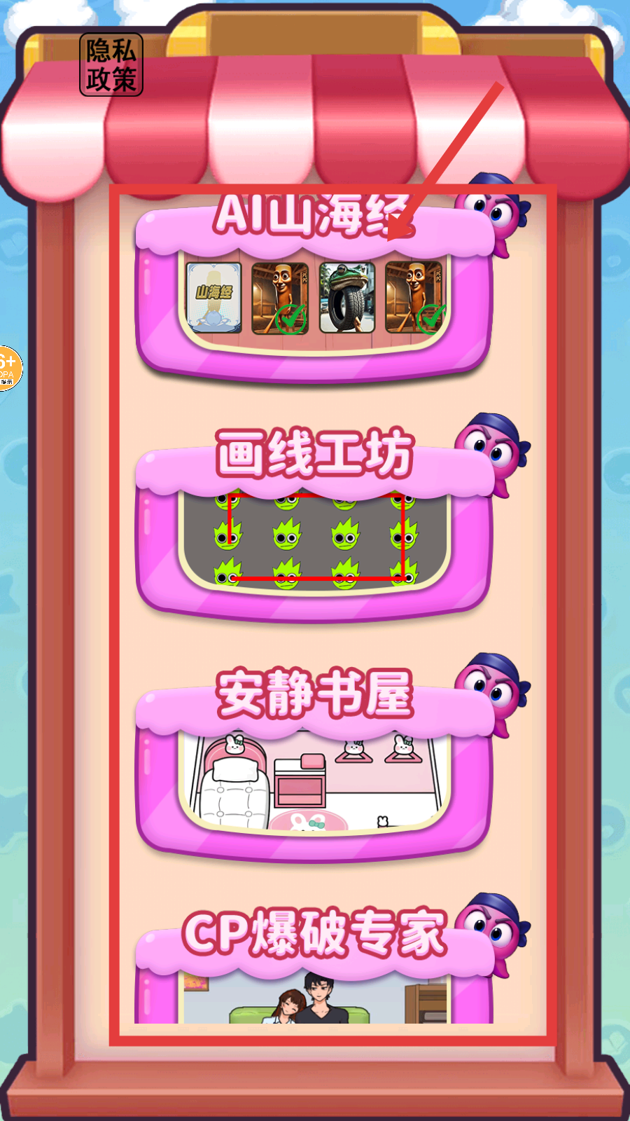 1、进入游戏界面,可选择【AI山海经】【画线工坊】等板块,挑选想体验的内容开启游戏。