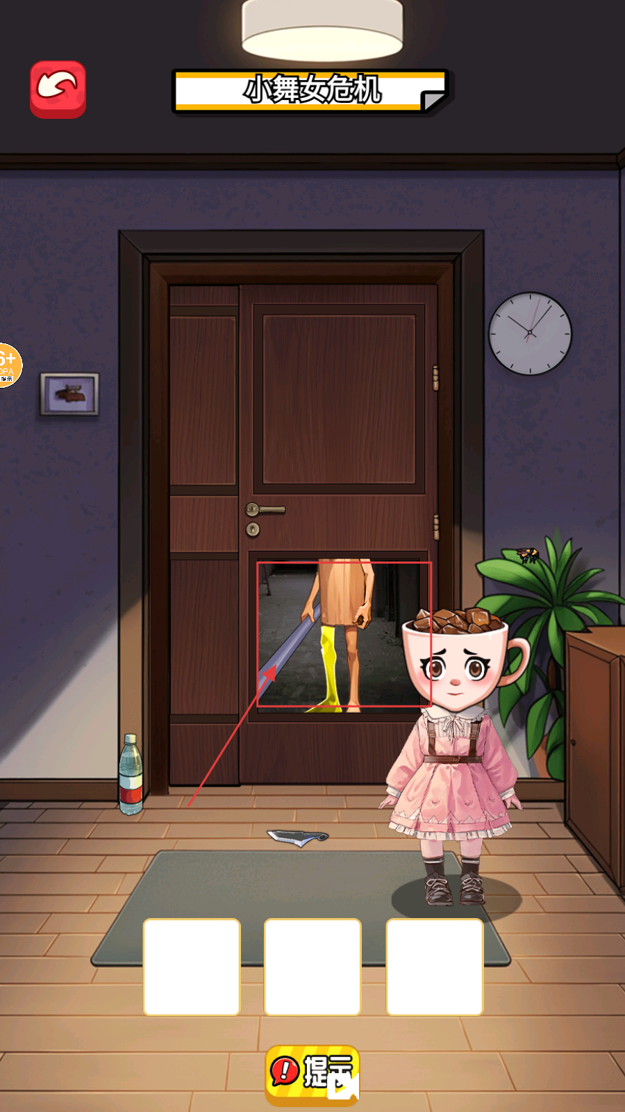 2、在“小舞女危机”场景,观察门外人物,其手持物品与特殊肢体,初步判断存在威胁。