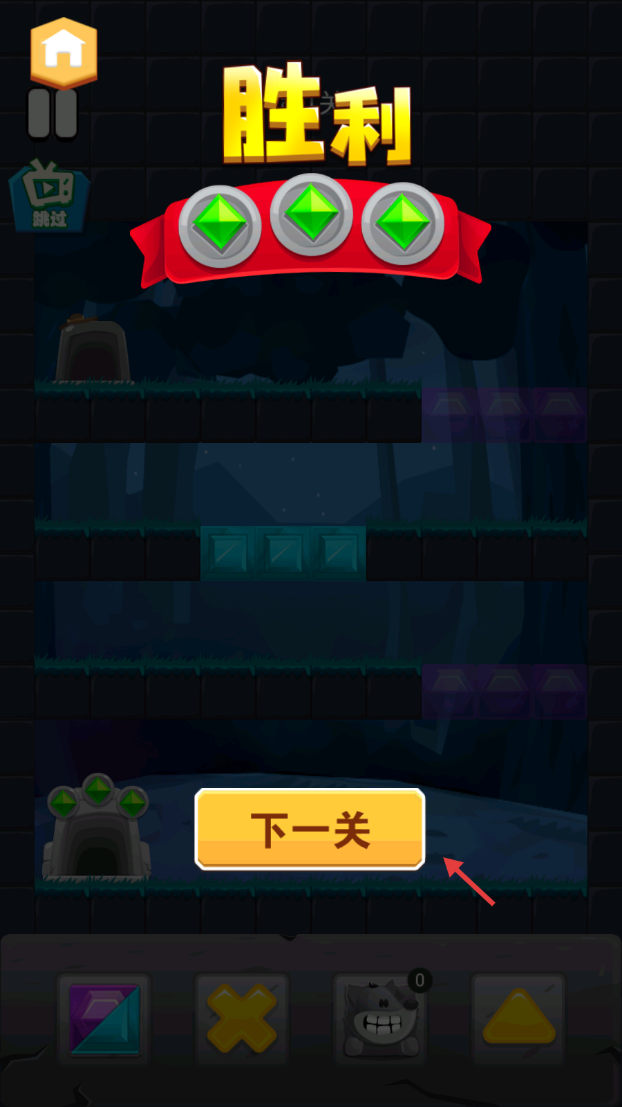 4、成功收集钥匙后,就能看到胜利界面,此时点击【下一关】按钮,继续挑战新的关卡吧。