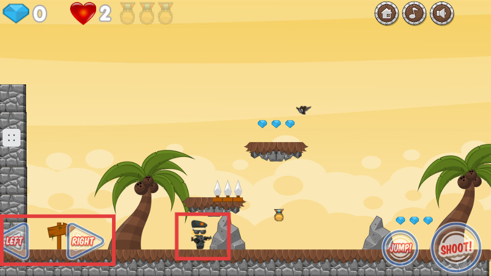 2、用左侧“LEFT”“RIGHT”按钮控制士兵左右移动。