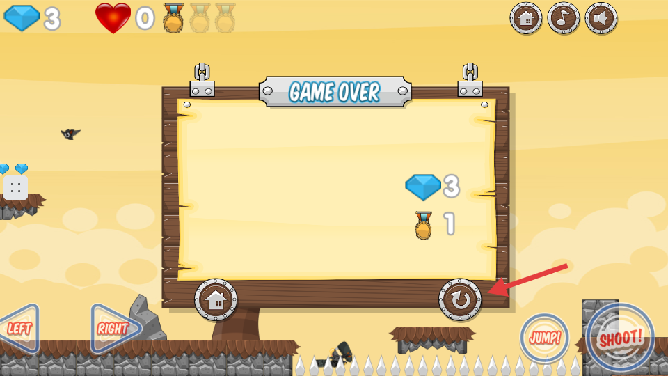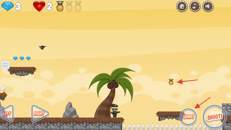 3、遇到奖章等道具时,按“JUMP!”按钮跳跃平台获取。