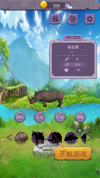 1、打开游戏暴虐恐龙生存,选【板齿犀】,点击【开始游戏】。