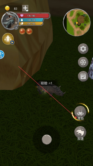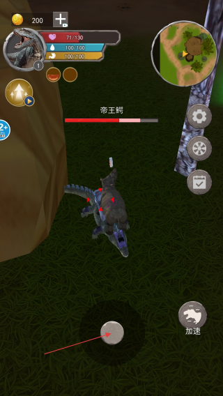 2、滑动虚拟摇杆移动,遇【帝王鳄】等敌人,规划战斗策略。
