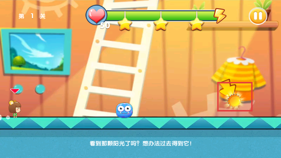 3、看到右侧的阳光,想办法操控角色移动过去,获取阳光,推进游戏。
