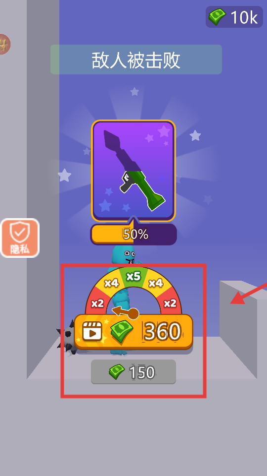 4、成功击败敌人后,会获得武器奖励以及金币,观看视频还能触发倍数奖励机制。