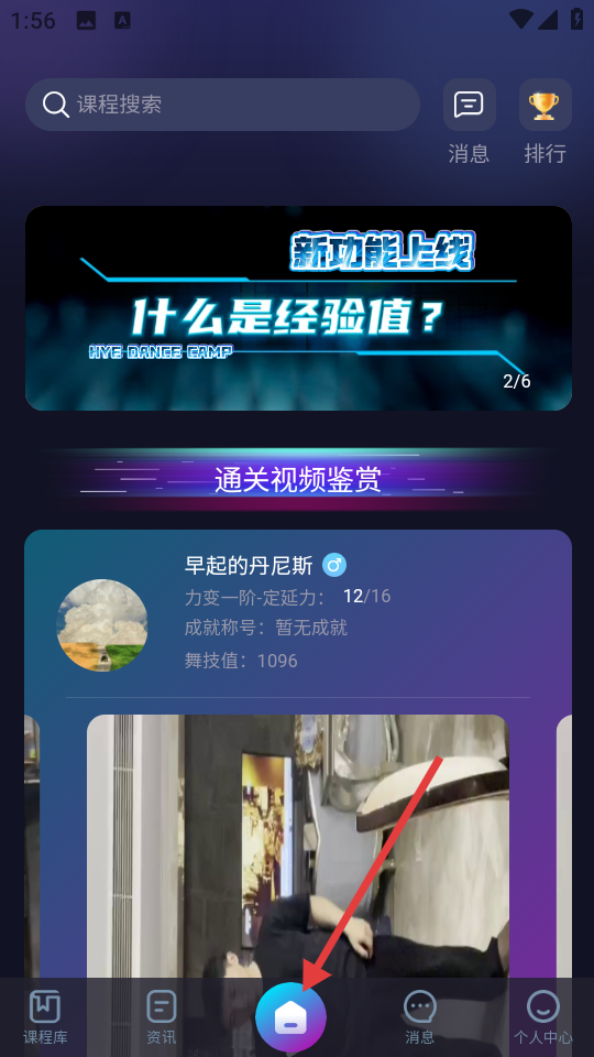 1、可在首页查看通关视频鉴赏,了解他人舞蹈成果,还能看到用户的舞技值等信息。