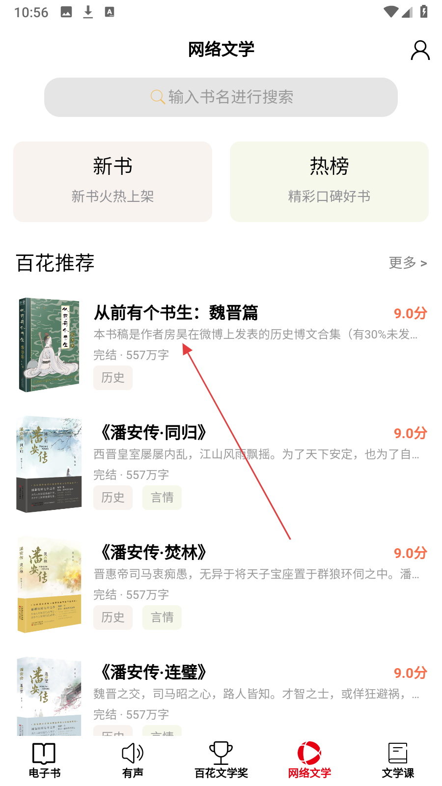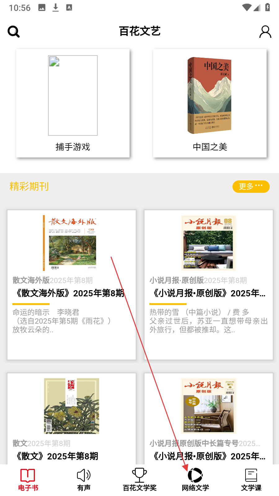1、首页点击底部【网络文学】,进入网络文学板块。