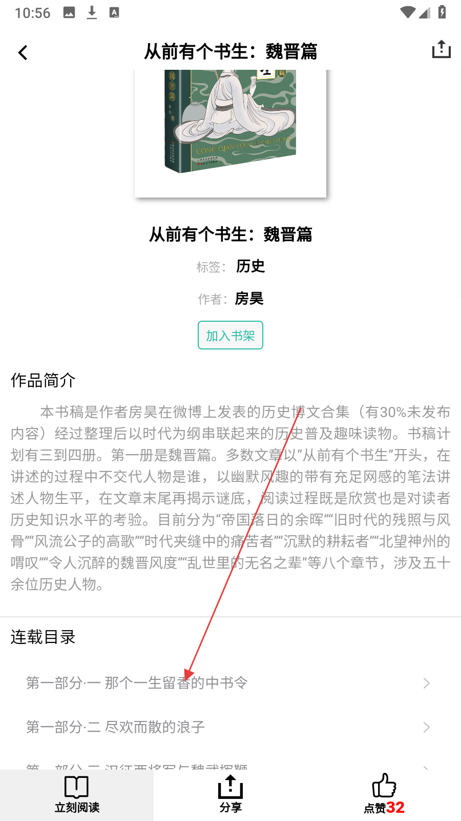 3、在书籍详情页点击【需要阅读的章节】,进入章节阅读页。