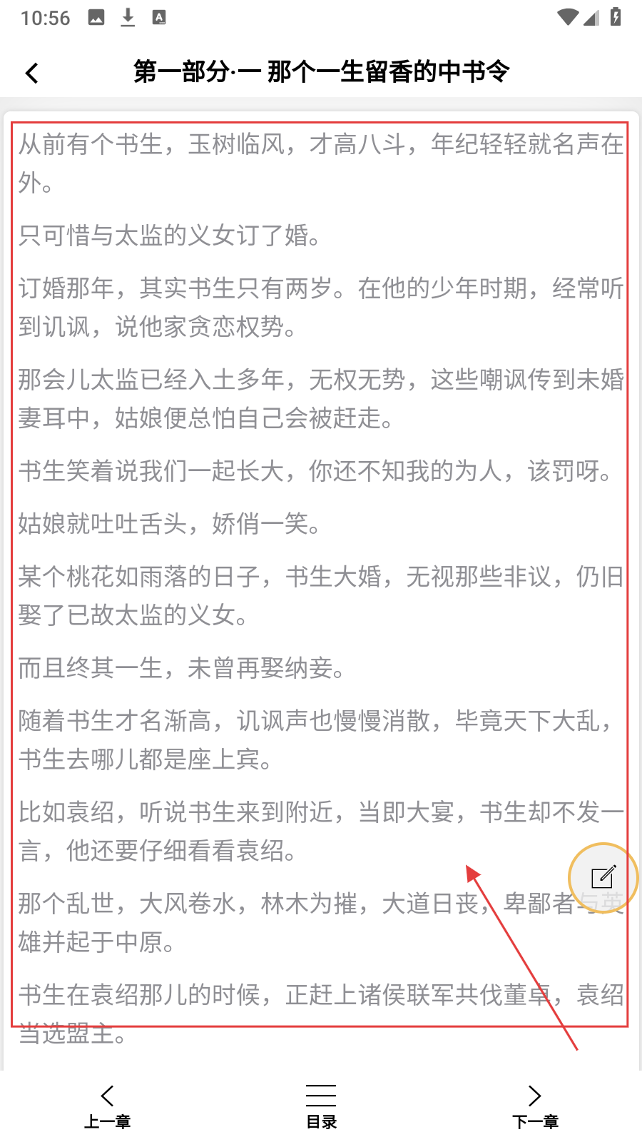 4、进入章节阅读页后,即可浏览【正文】的内容,开启阅读。