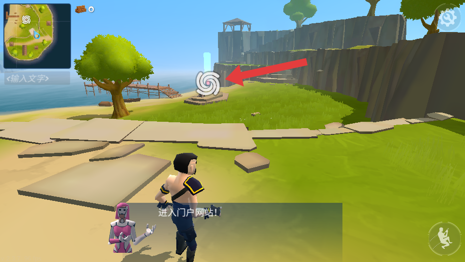 1、进入游戏场景,看到箭头指示后,前往【螺旋】标识处,进入门户网站。