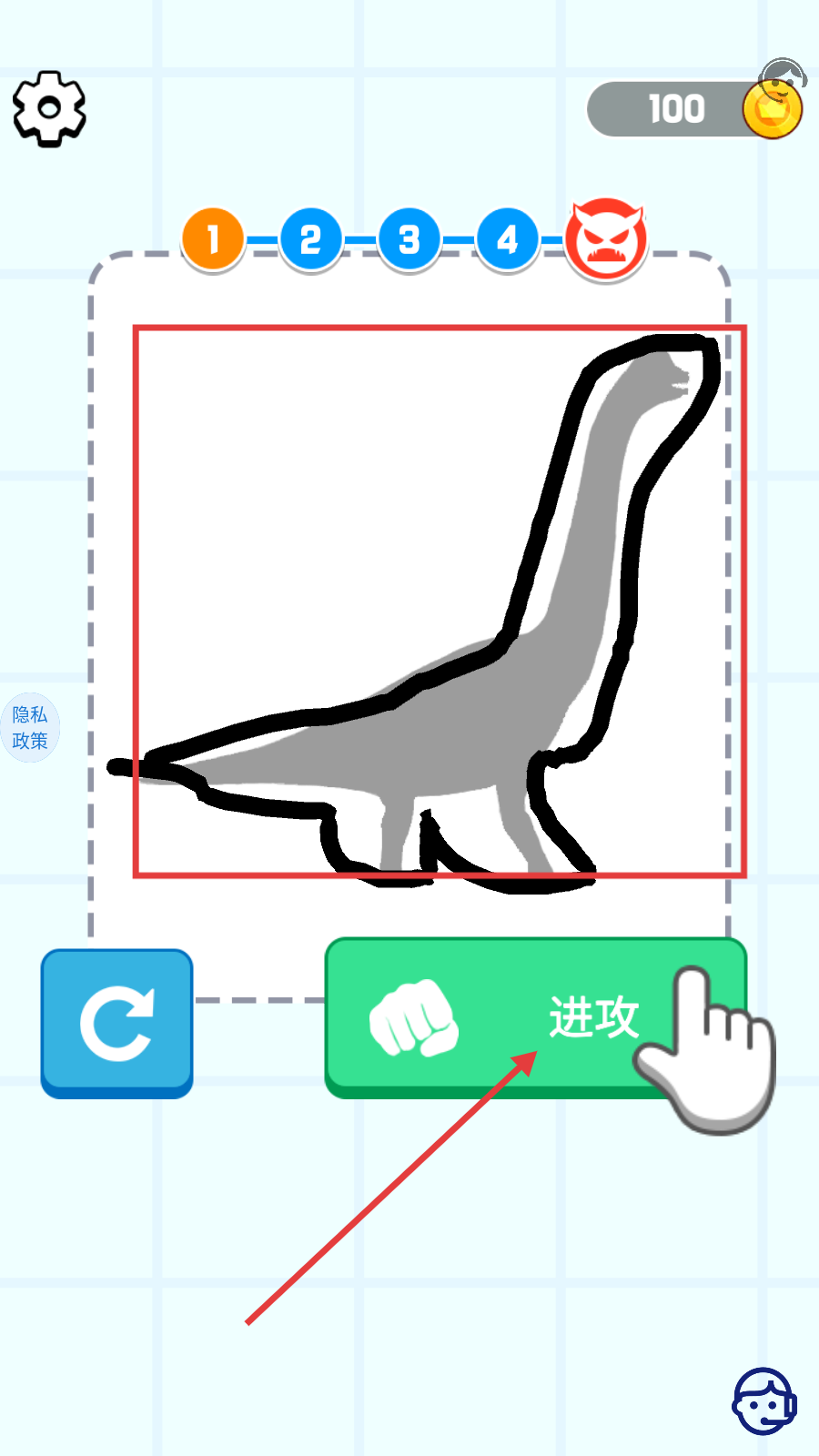 2、然后绘制恐龙轮廓,点击【进攻】。