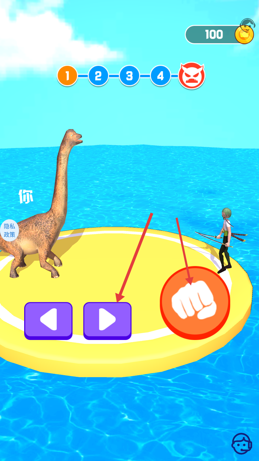 3、点击左键操控恐龙前进与敌人战斗,点击拳头攻击敌人。
