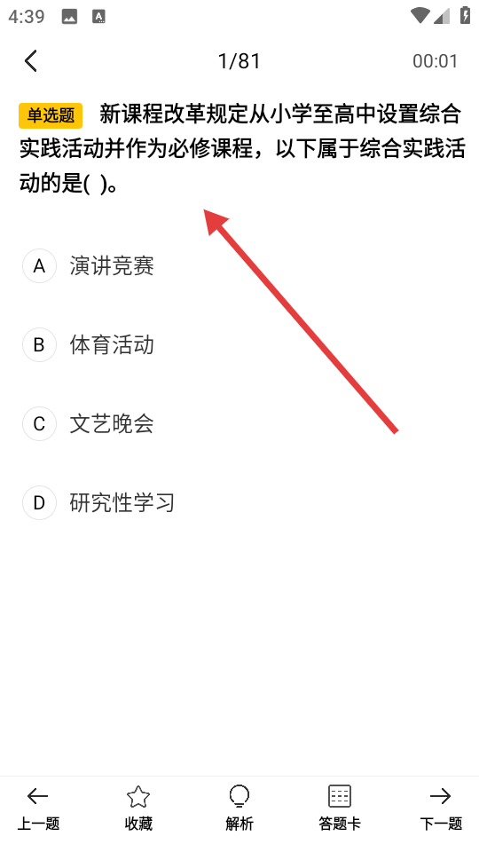 3、进入模考卷答题页面后,进行单选题等题型的练习。