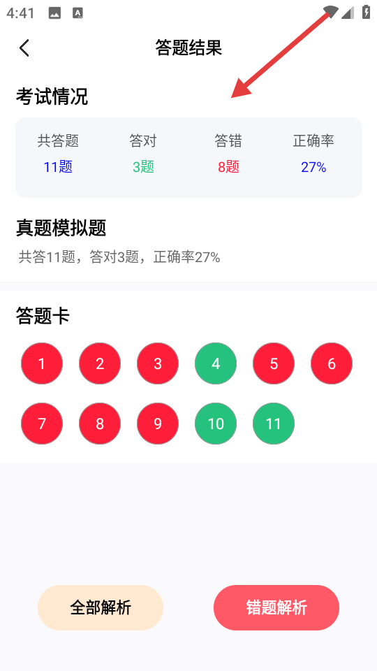 4、答题完成后,可查看答题结果,了解考试情况,还能查看题目解析。