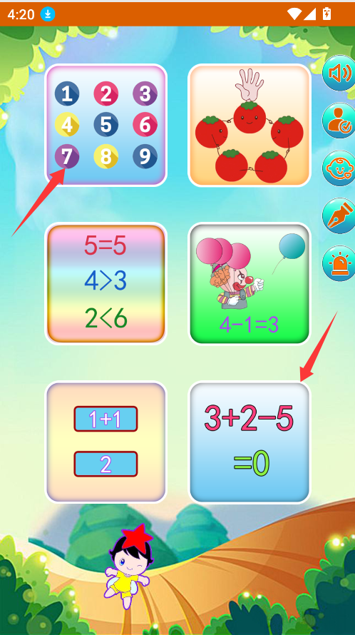 2、数字学习界面,点击符号或数字可完成题目作答。