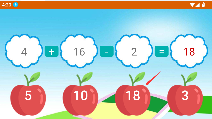 2、拥有算术练习功能,呈现数字、运算符号及习题,支持点击操作完成题目作答。