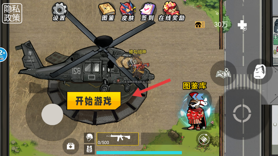1、点击黄色【开始游戏】按钮,进入游戏,可查看【设置】【图鉴】等功能,准备开启战斗。