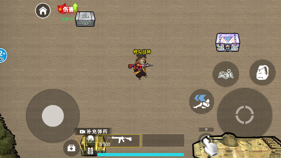 3、在游戏场景中,通过左侧虚拟按键操控角色移动,点击【补充弹药】为武器装填子弹。