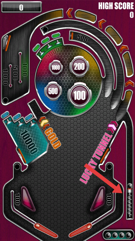 2、游戏中,观察弹球台布局,点击箭头处发射弹球获取分数。