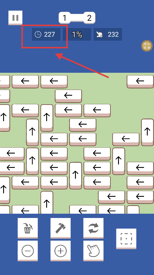 4、进入更高难度关卡,留意上方时间(如【227】),优先移动能快速移出的方块,以高效推进通关进度。