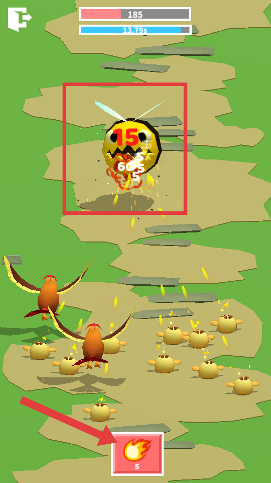 3、在关卡里,点击【火焰】图标技能,对怪物进行攻击。