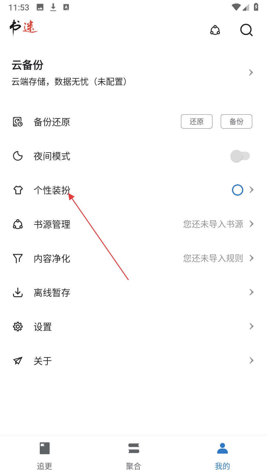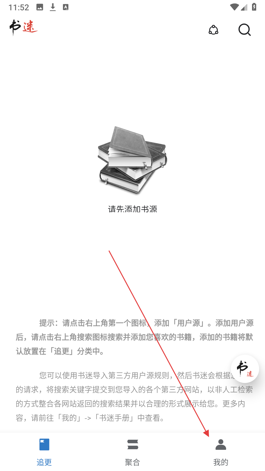 1、在追更页面,点击右下角【我的】,进入个人设置页面。