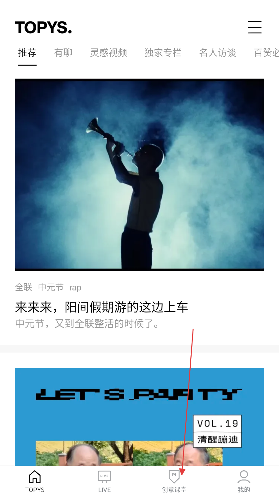 1、在首页,点击下方【创意课堂】,进入创意课堂页面。