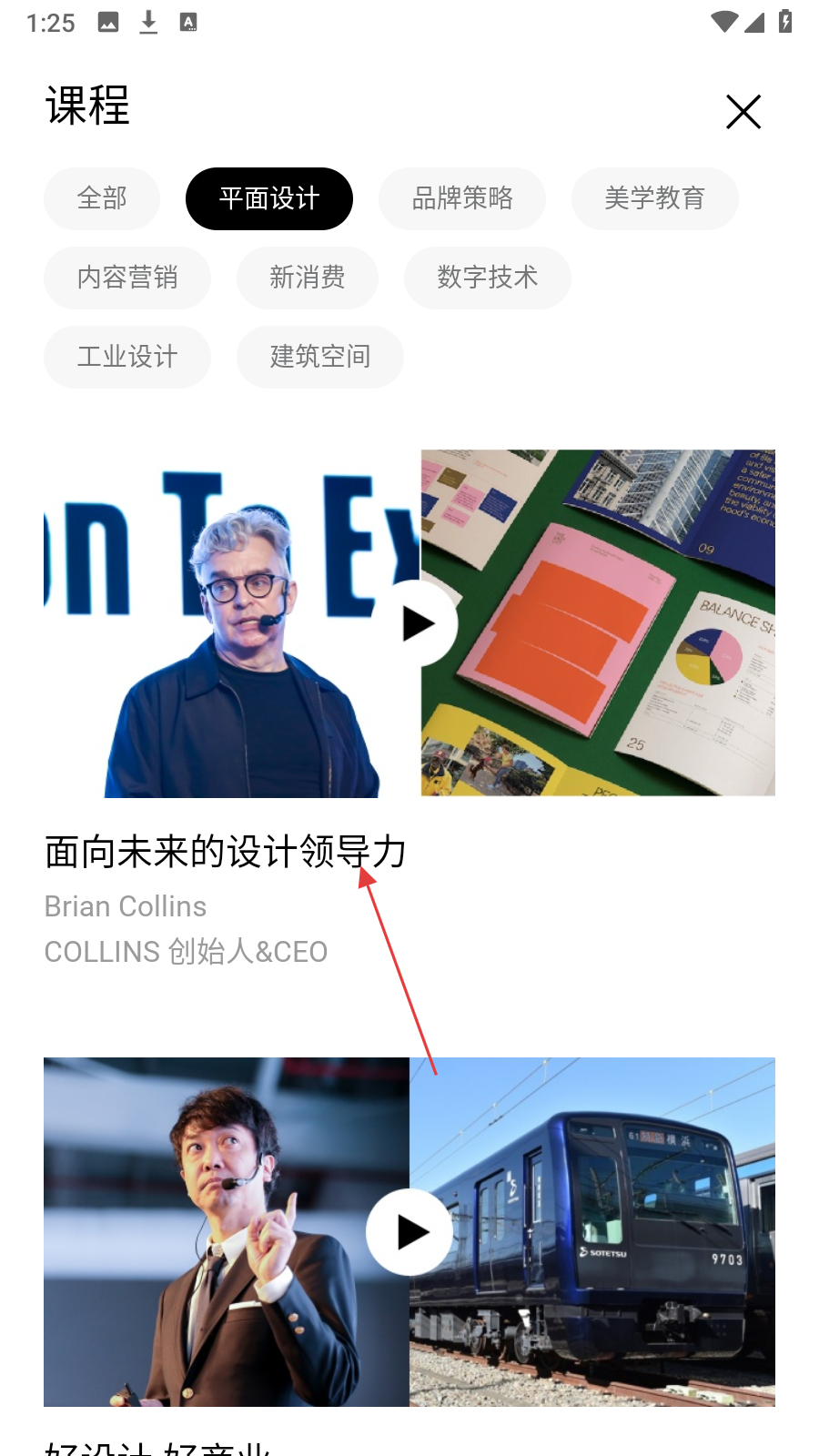 3、在平面设计课程列表页面,点击【需要的课程】,进入课程详情页面。