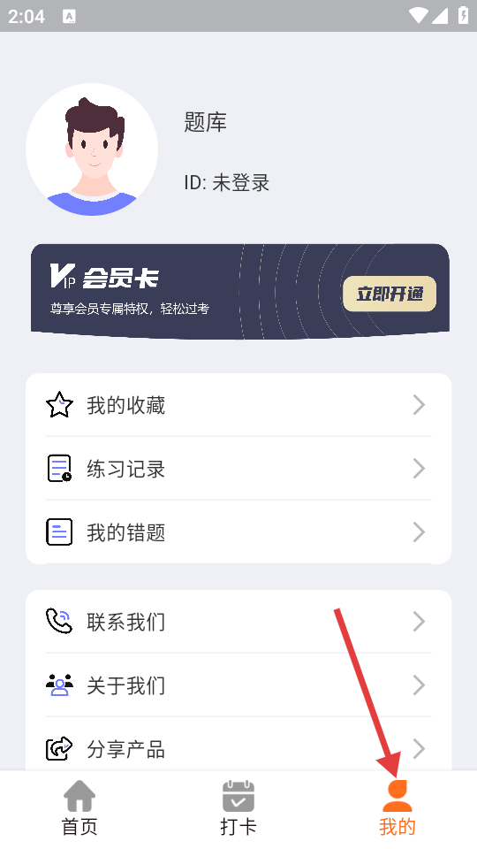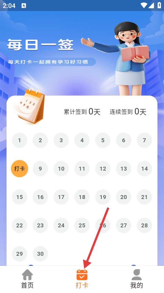 3、点击【打卡】,可每日签到,培养学习好习惯,查看累计签到和连续签到天数。