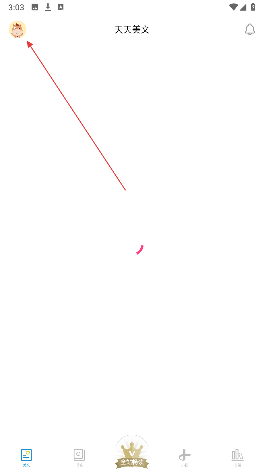 1、在天天美文页面,点击【左上角头像】,进入个人相关页面。