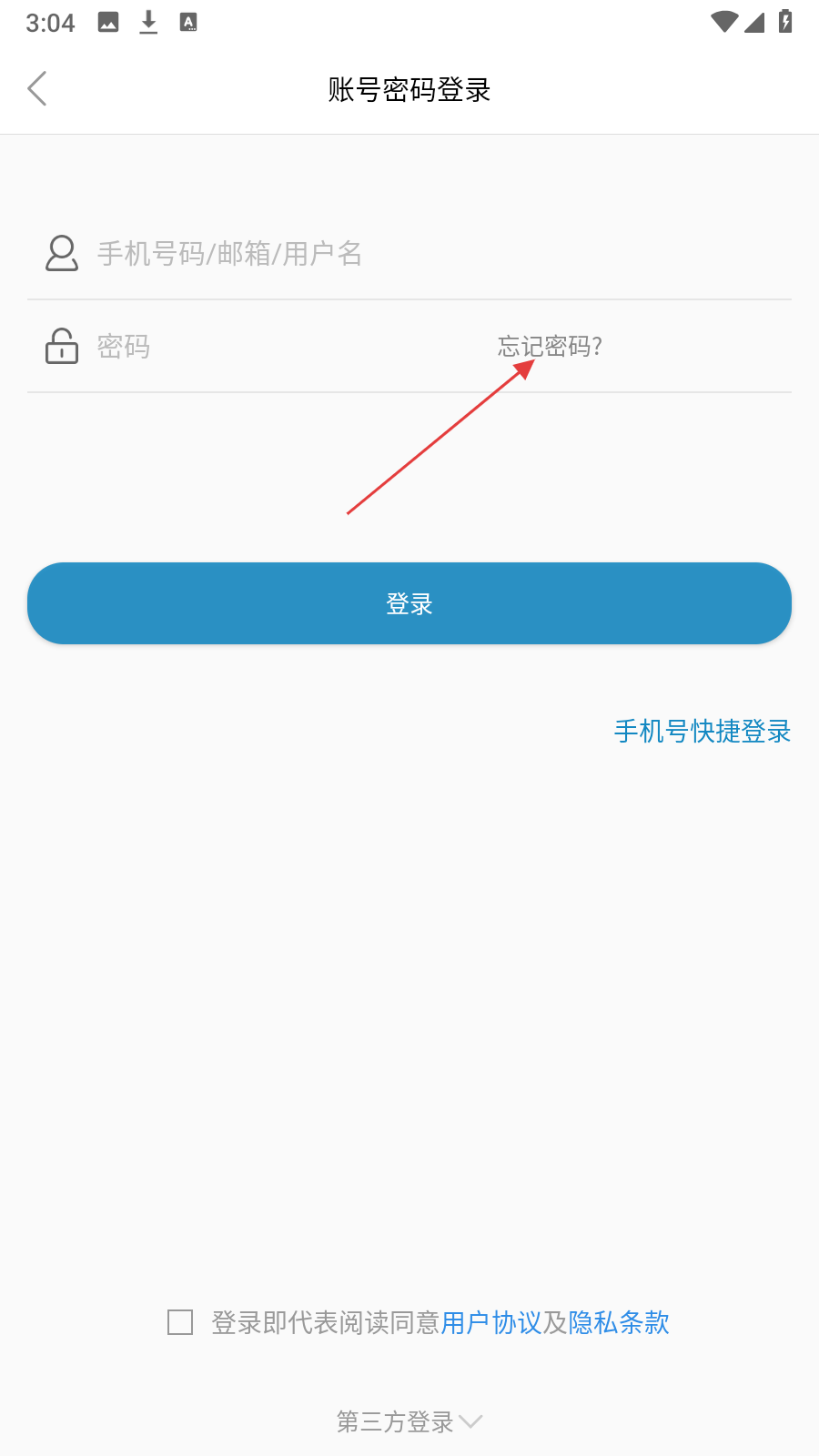 3、若忘记密码,在账号密码登录页面点击【忘记密码?】,进入密码找回页面。
