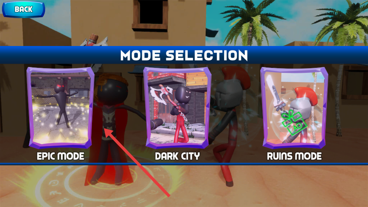 2、在模式选择界面,可选择EPICMODE、DARKCITY、RUINSMODE等模式,选择后进入对应场景。