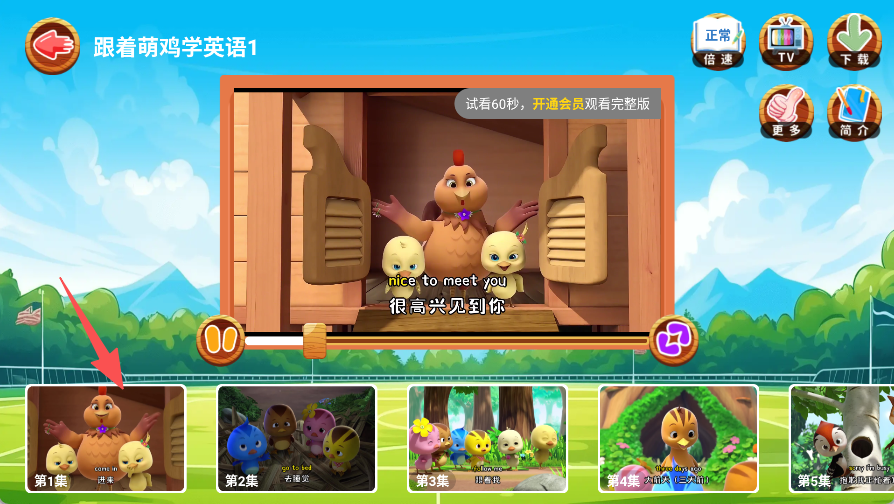1、提供动画儿歌播放功能,通过趣味儿歌形式,帮助熟悉英语发音与基础词汇。