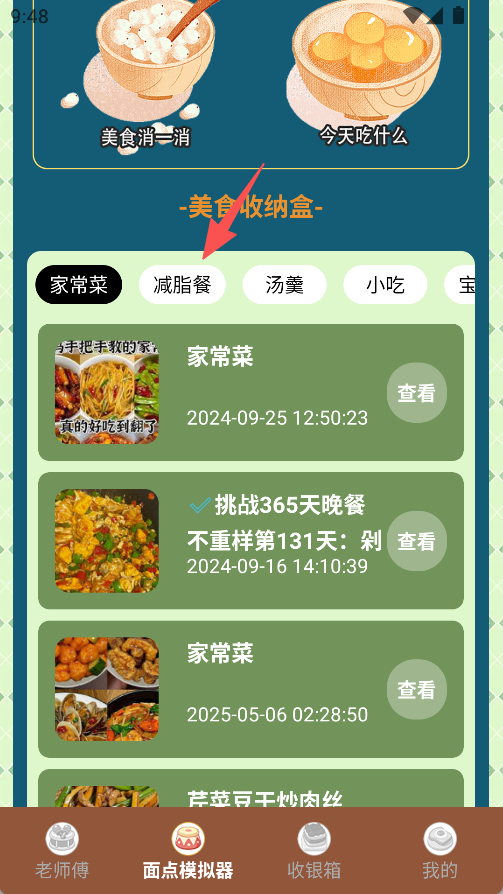 3、在美食收纳盒可查看家常菜、减脂餐等各类美食。
