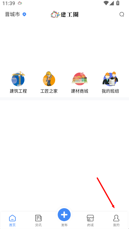 1、进入建工圈首页后,点击右下角“我的”,可进入个人中心页面。
